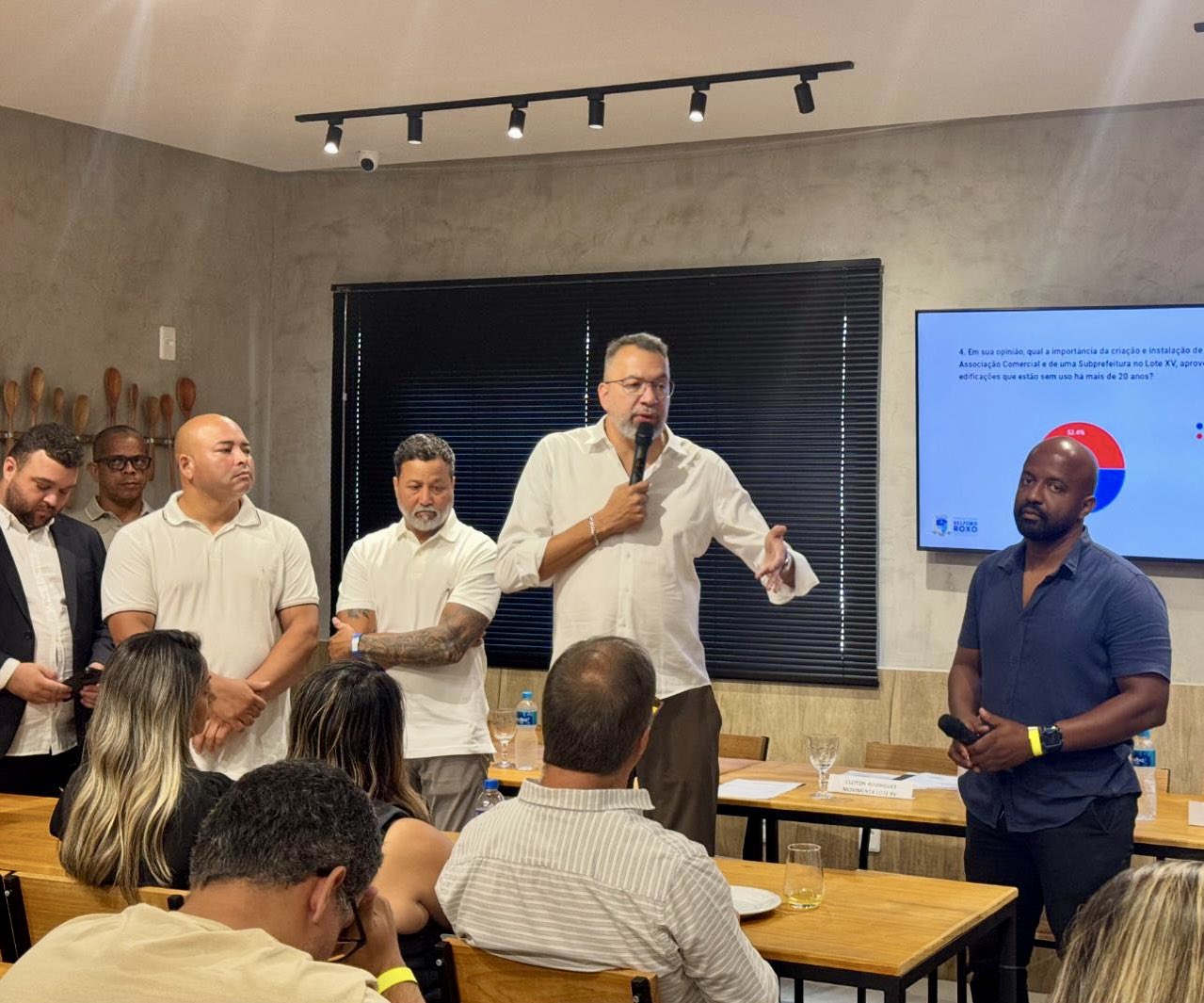 Prefeito e o secretário de Urbanismo, Reginaldo Gomes, se reuniram com cerca de 50 comerciantes do Lote XV para debaterem a revitalização do centro comercial da região