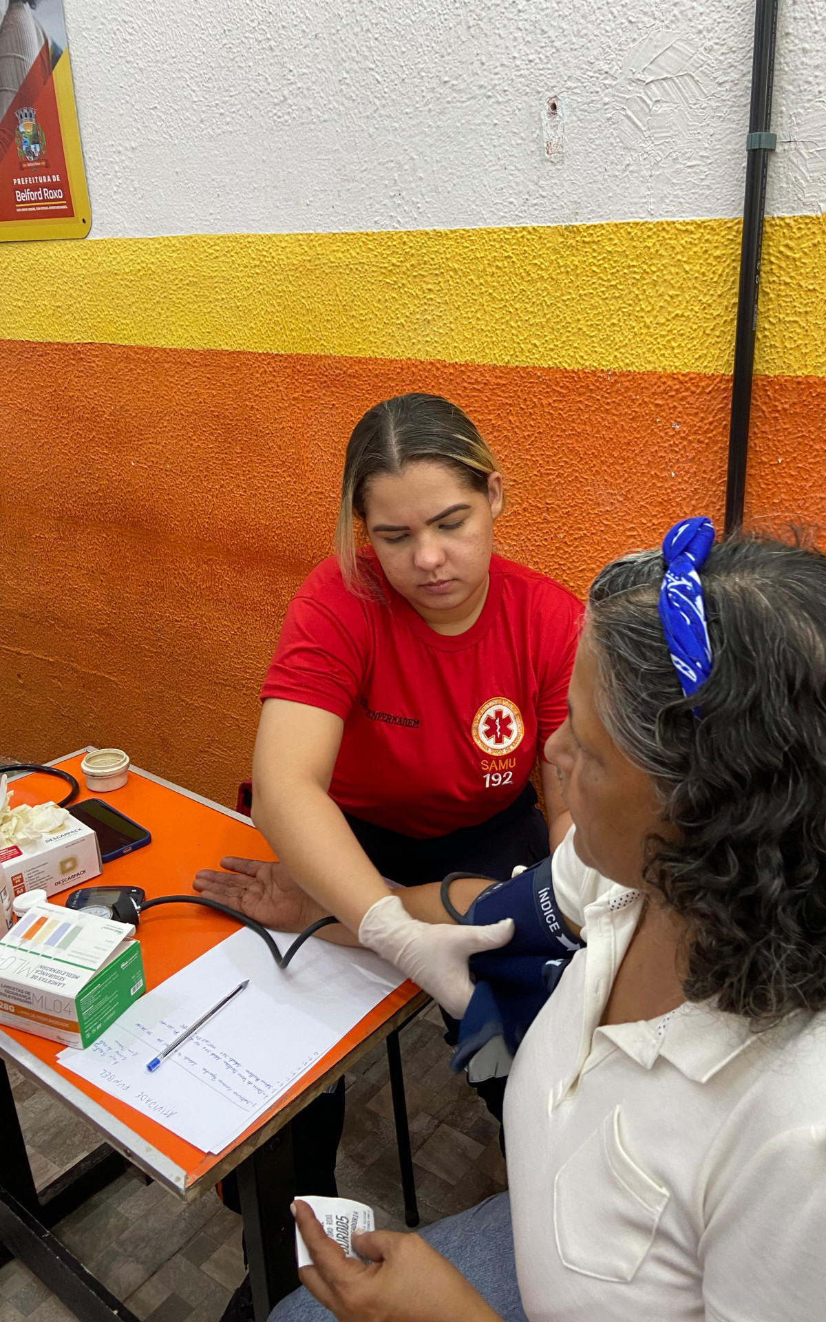 A Semana da Enfermagem apresentou uma série de serviços, como aferição de pressão. Divulgação / PMBR |