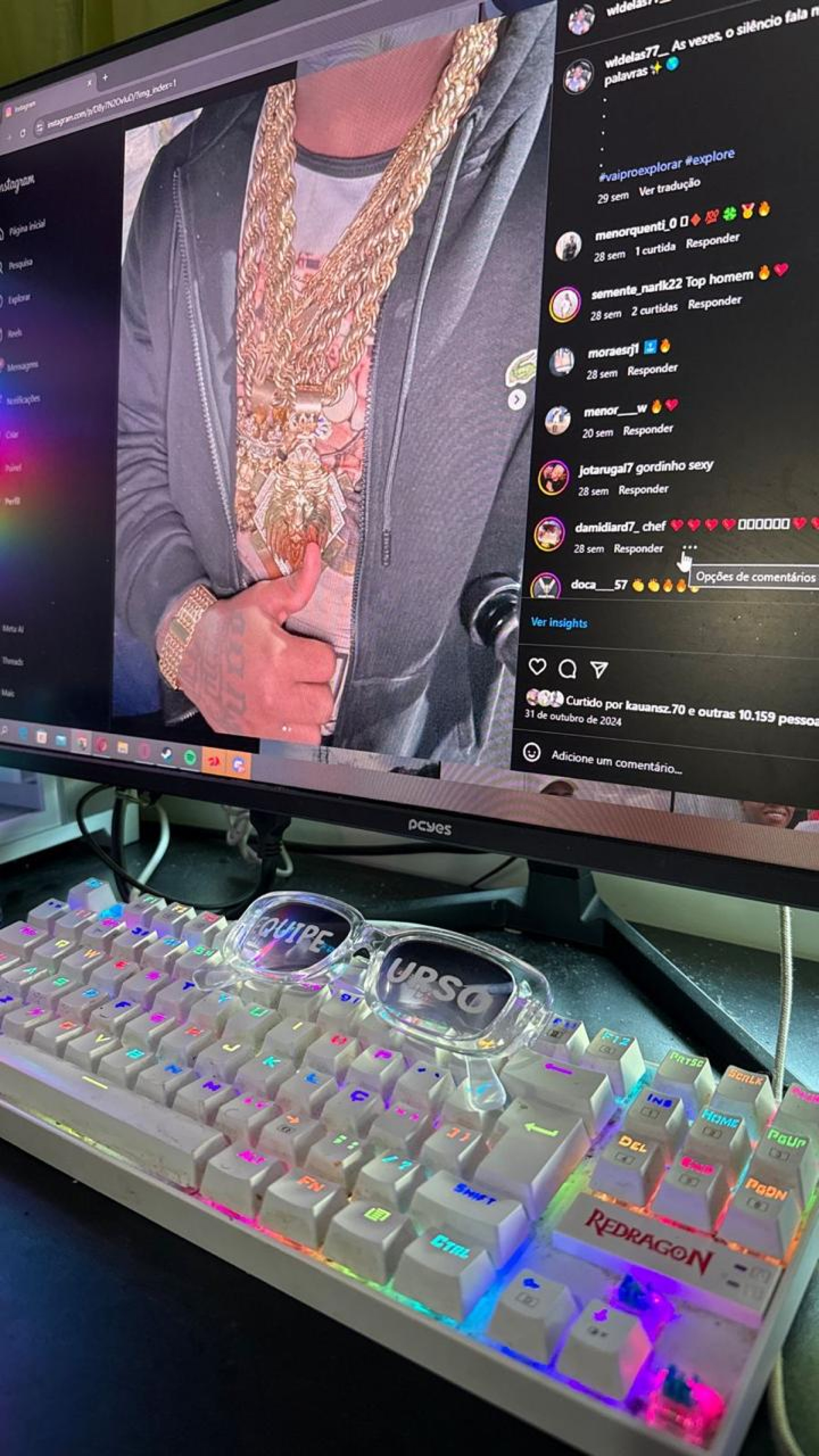 Durante a operação, os policiais acharam camisas personalizadas com o nome do "Bonde do Urso", acessórios e imagens que mostram os bandidos ostentando joias, ouro e tirando fotos com traficantes.